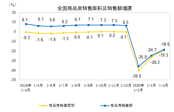表1 2020年1-4月份全國(guó)房地產(chǎn)開(kāi)發(fā)和銷(xiāo)售情況